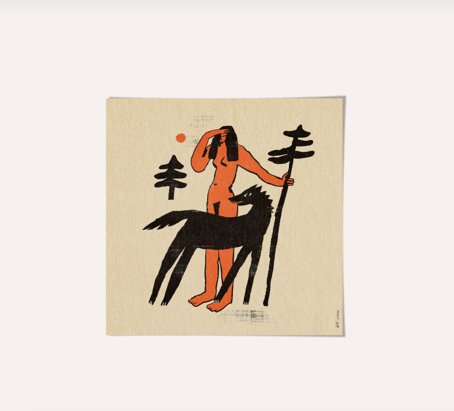 Artwork we have showcased in-store, that we’re currently in love comes from the incredible Enikő Eged. Her work blends abstract shapes with bold, graphic storytelling, creating emotion-packed scenes rooted in folklore and nature. We’re especially drawn to the way she brings animals to life on raw canvas—bright flashes of orange sitting beautifully against earthy tones and deep black prints. It feels like nature, memory, and myth woven together. A little wild. A little nostalgic. Completely at home in our space. These fine art print are exclusively available at PSTR Studio.